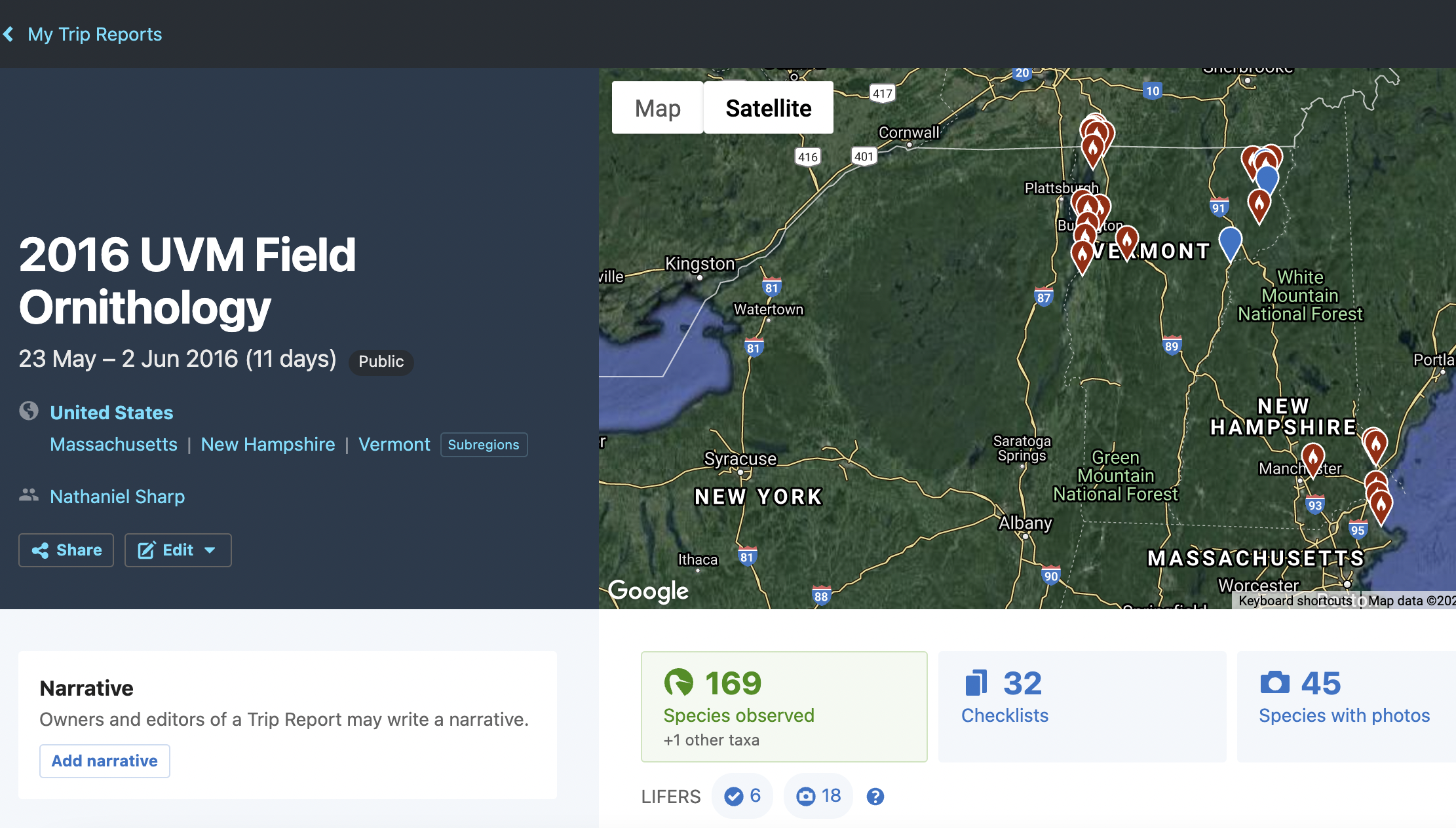 New eBird Trip Reports bring together your eBird checklists to tell birding stories. With exciting new features such as an eBird checklist location map and bulk checklist sharing.