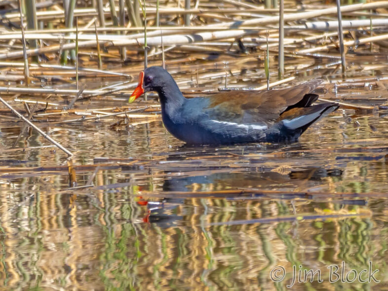 A dapper (and unexpected) Common Gallinule at Kendall Station posed obligingly for many birders over several days in early May. © Jim Block https://www.jimblockphoto.com/B