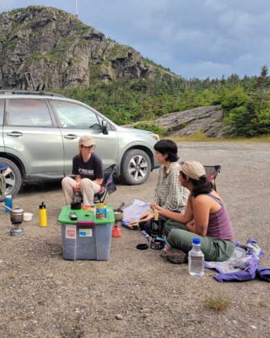 On our first visit to Mount Washington, the face of the mountain seemed forbiddingly stark—but after two months of regular forays into the wild landscape surrounding Mount Washington’s auto road, each curve of the road now brings with it a new memory of adventure and success. Over the course of the summer, our banding team worked their way up from the forests surrounding Radiator Spring, to the tumbled rocky sweep of Winter Cutoff, all the way to the very last edge of Washington’s tree line at Crag Corner. Each day, as the last cars made their way down the mountain, we would gather up nets and net poles and venture off-road, searching for the perfect places to catch Bicknell’s Thrush.