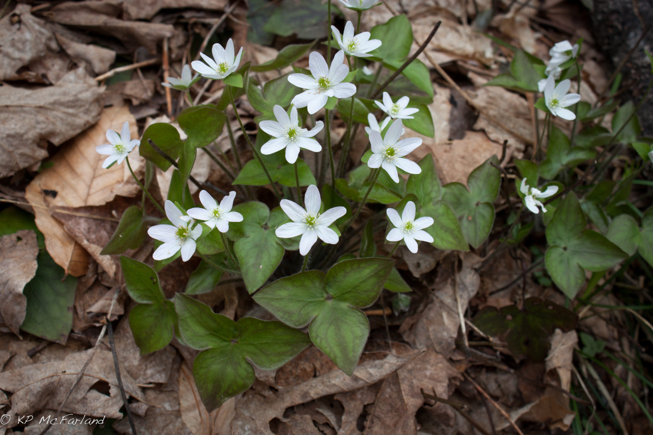Sharp-Lobed Hepatica flowering in the forest understory before the trees leaf out. / © K.P. McFarland