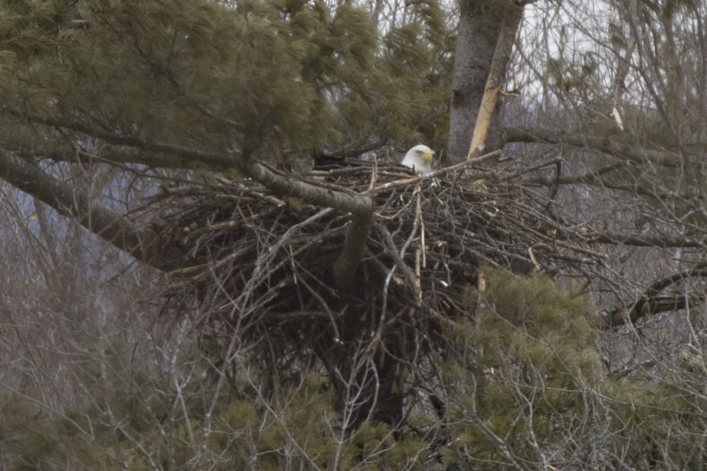 Bald Eagles typically nest along significant water bodies where fish and other aquatic foods are readily available. In Vermont, most bald eagle nests are found along the Connecticut River, Lake Champlain, Lake Memphremagog, and some other large inland bodies of water. Bald eagles typically nest in tall trees with broad visibility and sturdy branches located near lakes and rivers. Adults show a strong tendency for fidelity to their breeding areas, and will often use the same nest for many years. The nest tree requires sturdy branches to support the growing weight of the nest as materials are added each year. Nests are usually located approximately 50 to 60 feet high and 5 to 30 feet below the top of a live tree.
