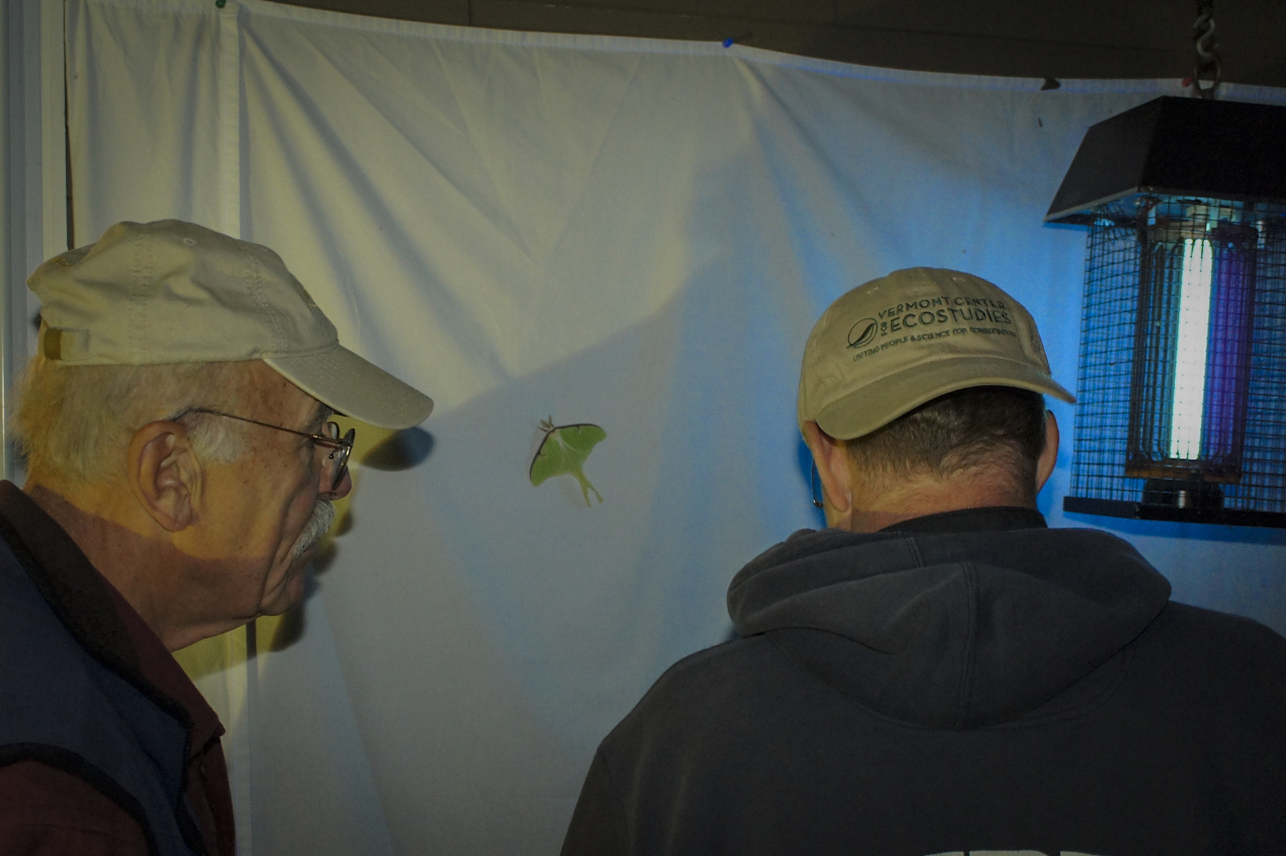 Since 2013, professional biologists and naturalists have contributed moth observations to the Vermont Atlas of Life on iNaturalist. Many of us turn on special lights in our backyards on summer nights to find hundreds of moths and other insects gathering on our sheets, hunt fields and forest for day-flying moths, and place rotten fruit bait out to attract other moths. Many of these moths can be identified from good photographs (although some are impossible without dissection and examination under a microscope). With today’s amazing digital photography technology, coupled with the newer Peterson’s Field Guide to Northeastern Moths and web sites like iNaturalist Vermont, BugGuide, Moth Photographers Group, or Moths of Eastern North America Facebook Group, moth watching (aka mothing) has become increasingly popular.