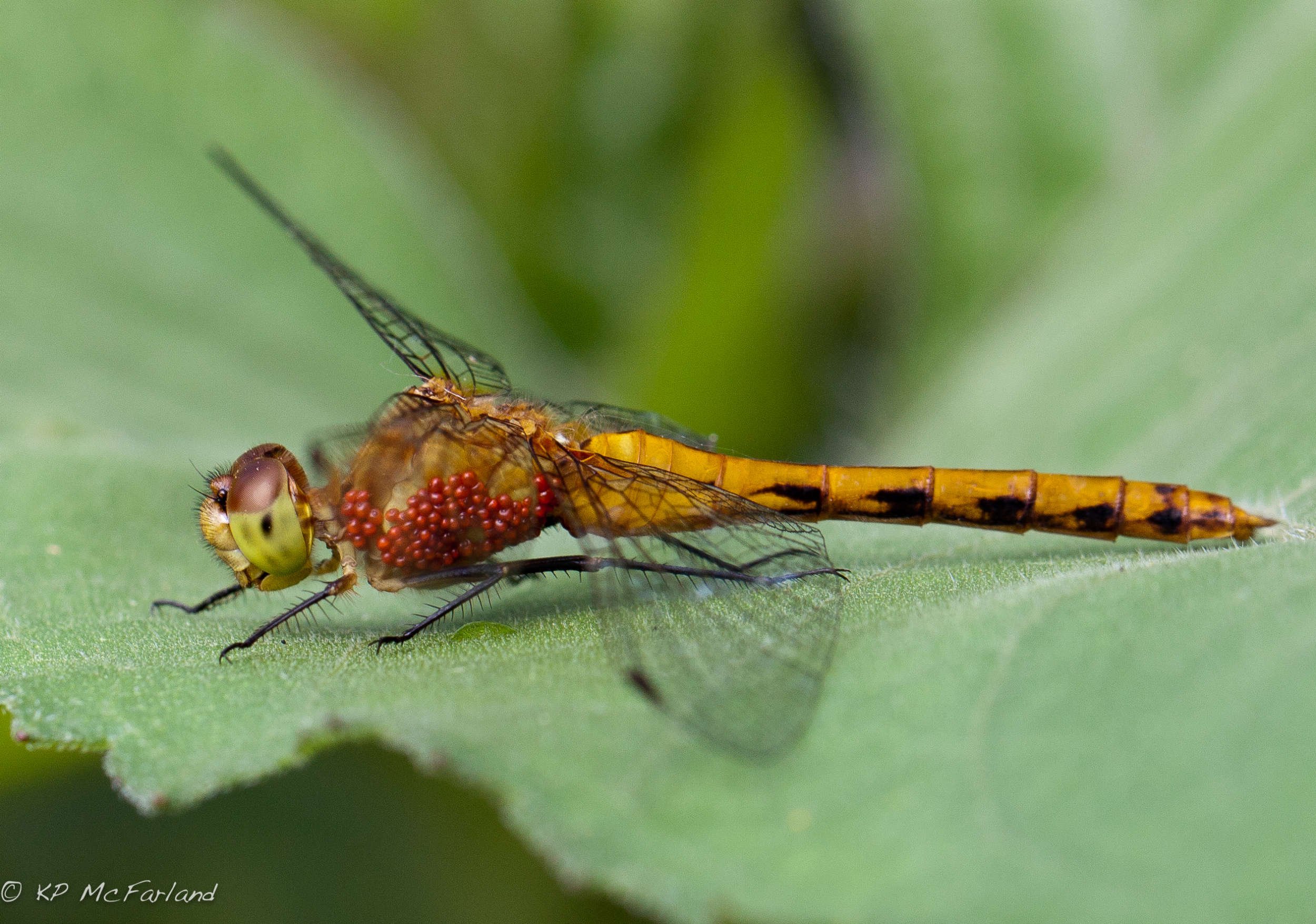 Frankly, I didn’t know the term either. But it turns out that those little red sacs weren’t eggs at all, but rather larvae of water mites hitching a ride on the dragonfly. Ecologist call it phoresy, the process of using another organism to move about.