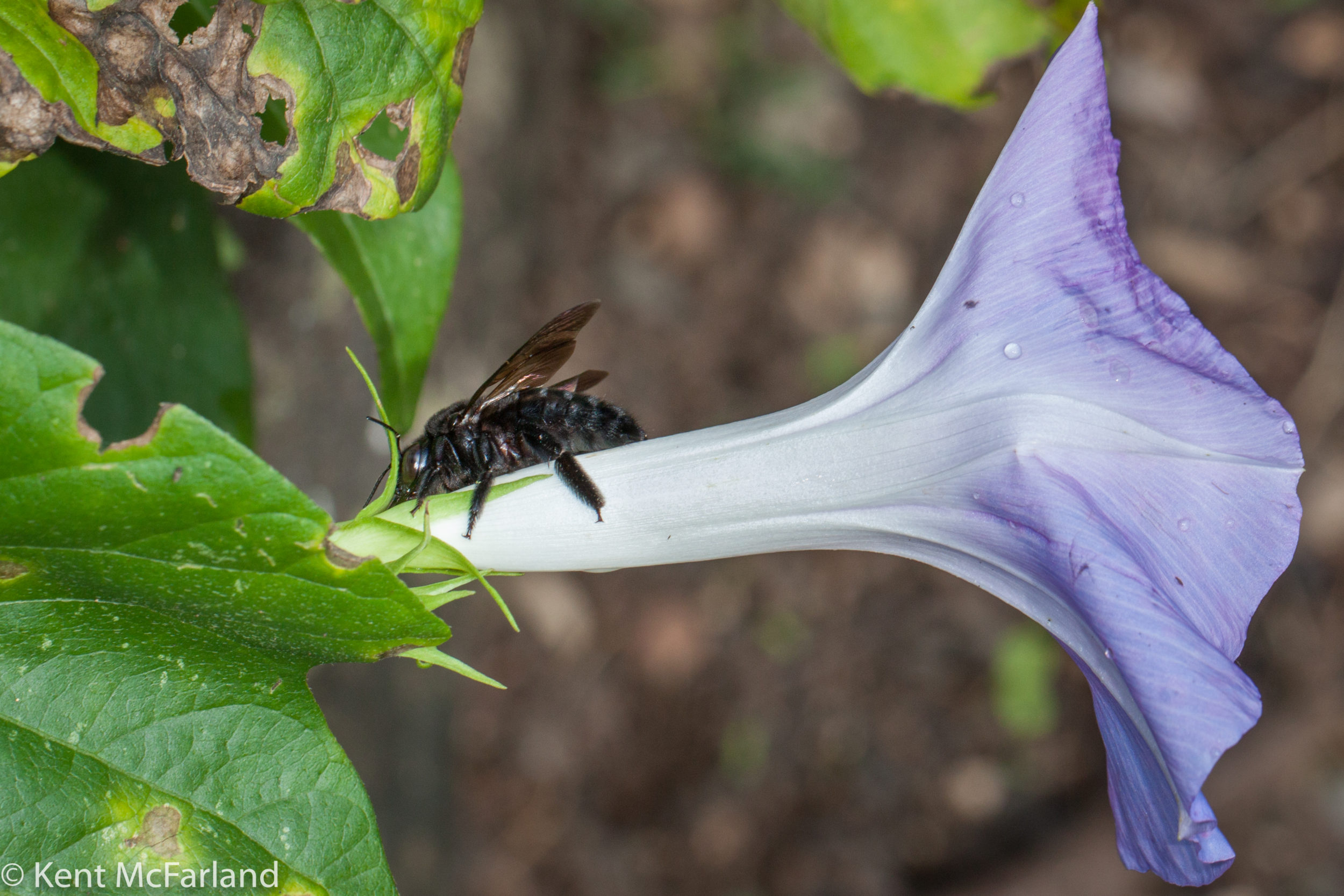 Bumblebees do it. So do carpenter bees. They sometimes cheat and rob flowers blind. Faced with a short tongue and a long flower, some bees make a cut at the base of the corolla with their strong mandibles and sip the nectar within. But it’s the flower’s loss. The bee bypasses the end of the flower where the anthers are full of pollen waiting for transport and the stigma waits for a pollen delivery. The plant gives up its sugary treat with nothing in return. Once there is an access hole, other insects will take advantage of the easy access too. Watch the long flowers in your garden and see if you can witness a robbery!