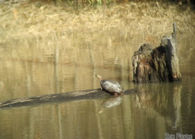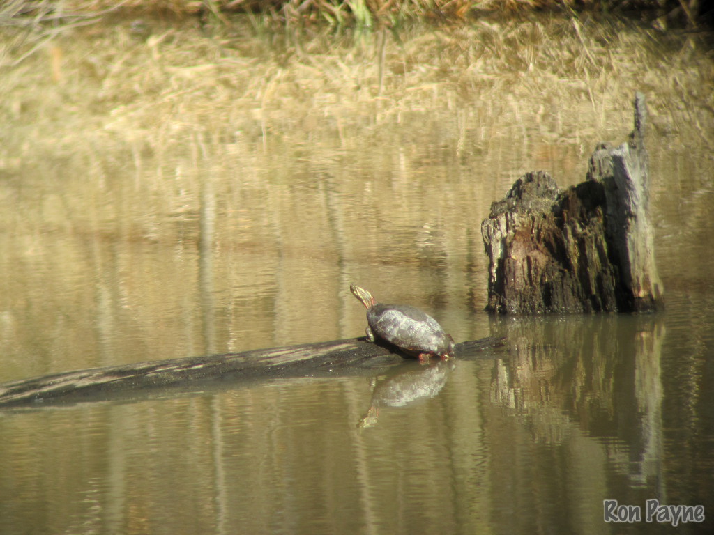 Under the ice of lakes and ponds the body temperature of the Painted Turtle averages just 43 °F all winter long. But after ice out, sunny and warm weather brings the Painted Turtles out to bask. To be active, they must maintain an internal body temperature between 63–73 °F. When fighting infection, they can raise their temperature up to 8 °F higher than normal. Despite becoming active in March, they may not eat until May if the weather stays cool. Mortality can be high during the spring when they are living on the energetic edge of life. Basking also helps them capture vitamin D from sunshine to metabolize calcium to grow and solidify their shells.