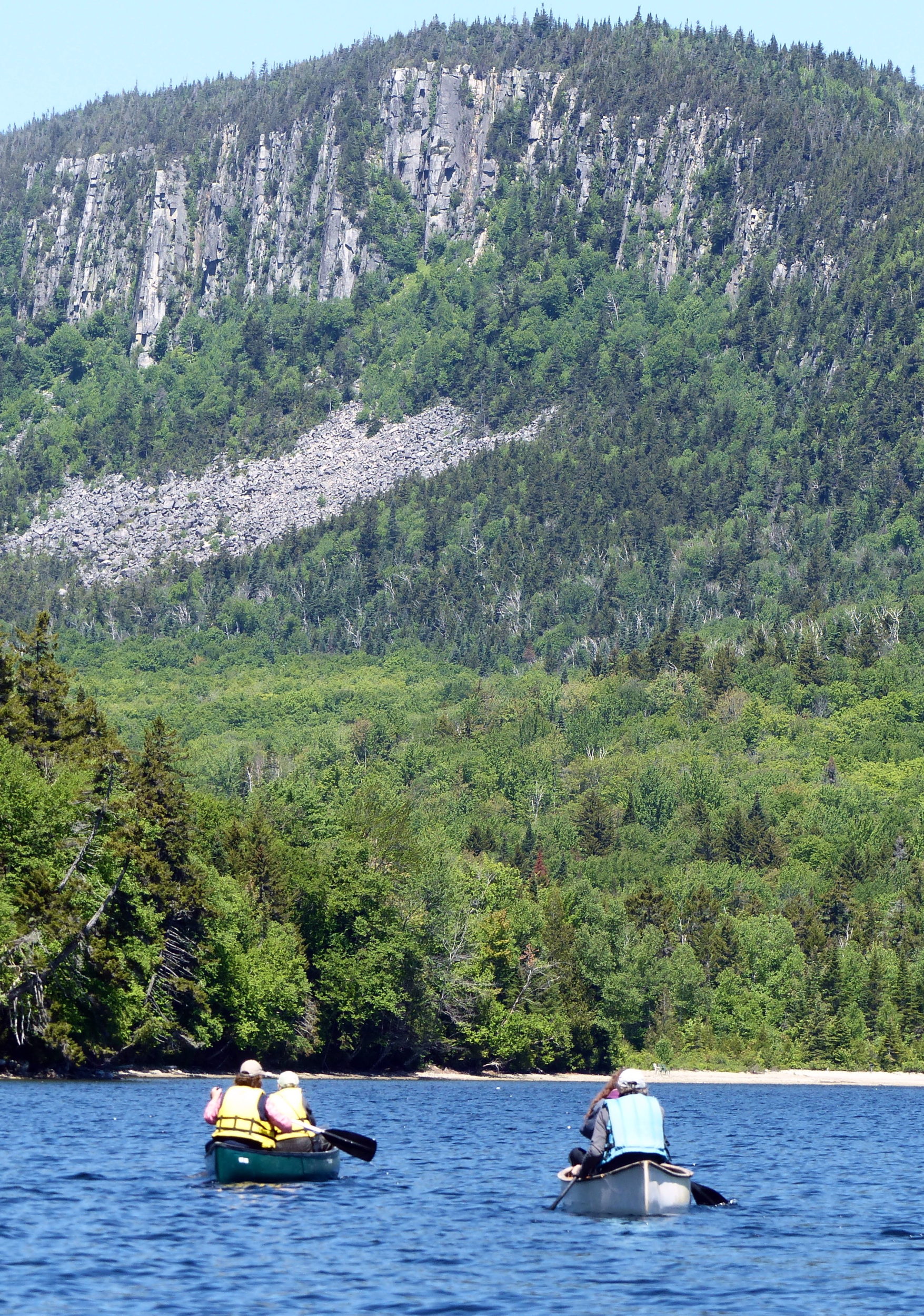 Paddlers on Little Averill Lake take in the view of Brousseau Mountain during VCE’s loon and songbird event in 2018. © Eric Hanson
