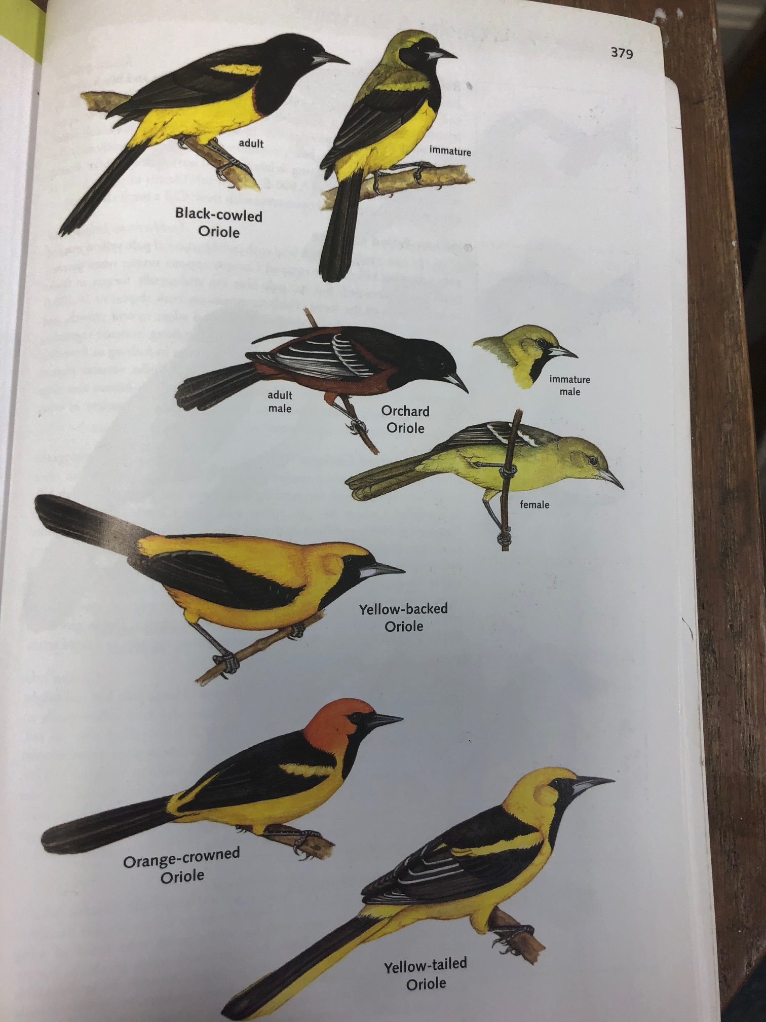 Five species of orioles found in Panama: 4 year-round residents and the North American migrant Orchard Oriole (second from top). © The Birds of Panama: a Field Guide (Angehr and Dean, 2010)