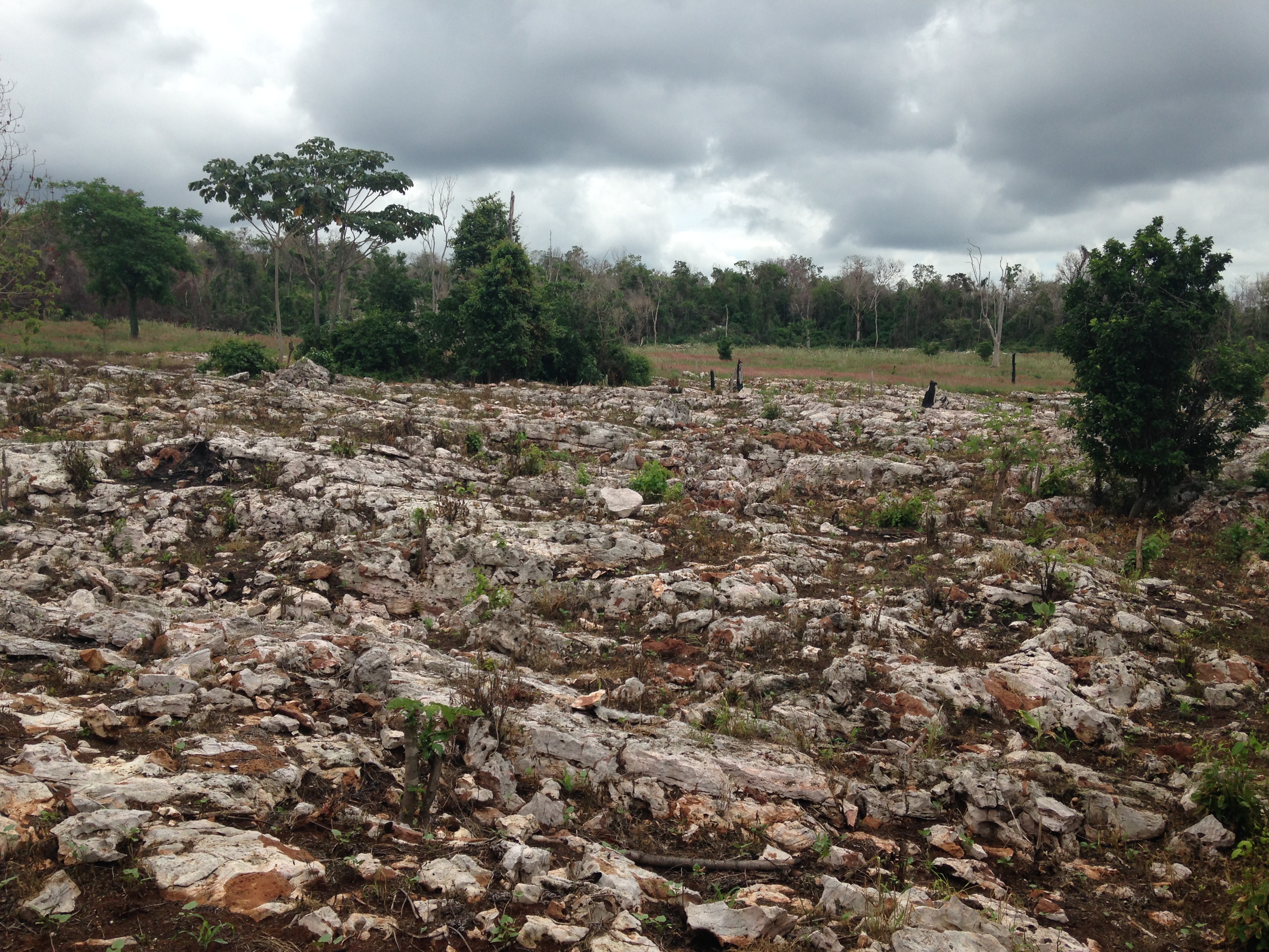 Dry forest inside Sierra de Bahoruco National Park recently cleared and burned to prepare for planting. The open field in the background was forest that was cleared but has not yet been burned.