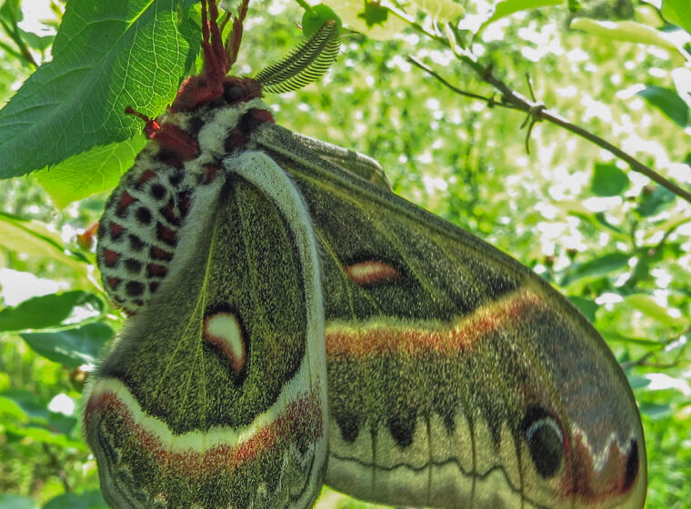 Congratulation to Charlotte Bill for winning the June 2020 Photo-observation of the Month. Charlotte discovered the cocoon on April 28 and was fortunate enough to see the Cecropia Moth emerged on June 5th.