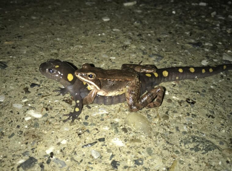 Congratulations to Ashley Bray for winning the April 2019 Vermont Atlas of Life iNaturalist photo-observation of the month. The image of Wood Frog riding a Spotted Salamander during spring migration garnered the most votes….