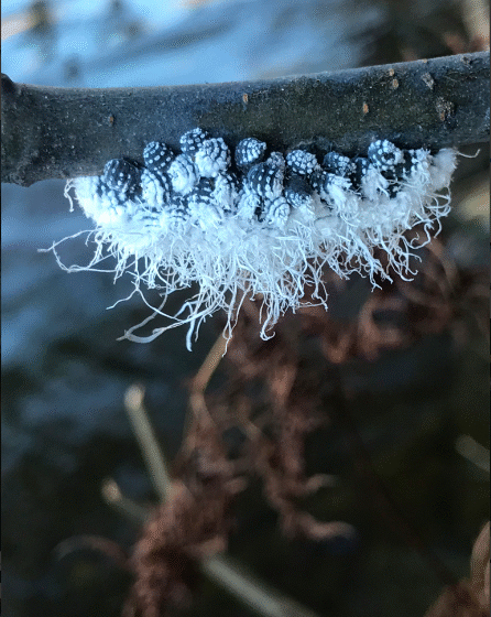 Congratulation to Pete Kerby-Miller for winning the October 2020 Photo-observation of the Month for the Vermont Atlas of Life on iNaturalist. Pete’s image of a congregation of Woolly Alder Aphids…