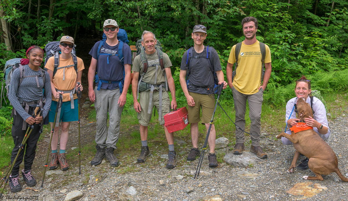 Besides, didn’t we owe a show of solidarity to those intrepid BITH, who toted their backpacks 1,500+ km to the Greater Antilles, and back? Fair is fair. So it was that on July 6, a crew of 7 VCEers assembled at the base of the Haselton Trail, donned our backpacks, and began the 5.5-km trudge up to Mansfield’s ridgeline. Of course, our backpacks weighed far more than the 4% of body weight that a 1.1-gram GPS tag adds to a typical BITH. Well, we may have been lugging overnight gear, food, and banding supplies, but at least we were on a well-marked trail over a relatively short distance, versus migrating hundreds of kilometers under cover of darkness across unfamiliar and potentially treacherous terrain that includes open ocean.