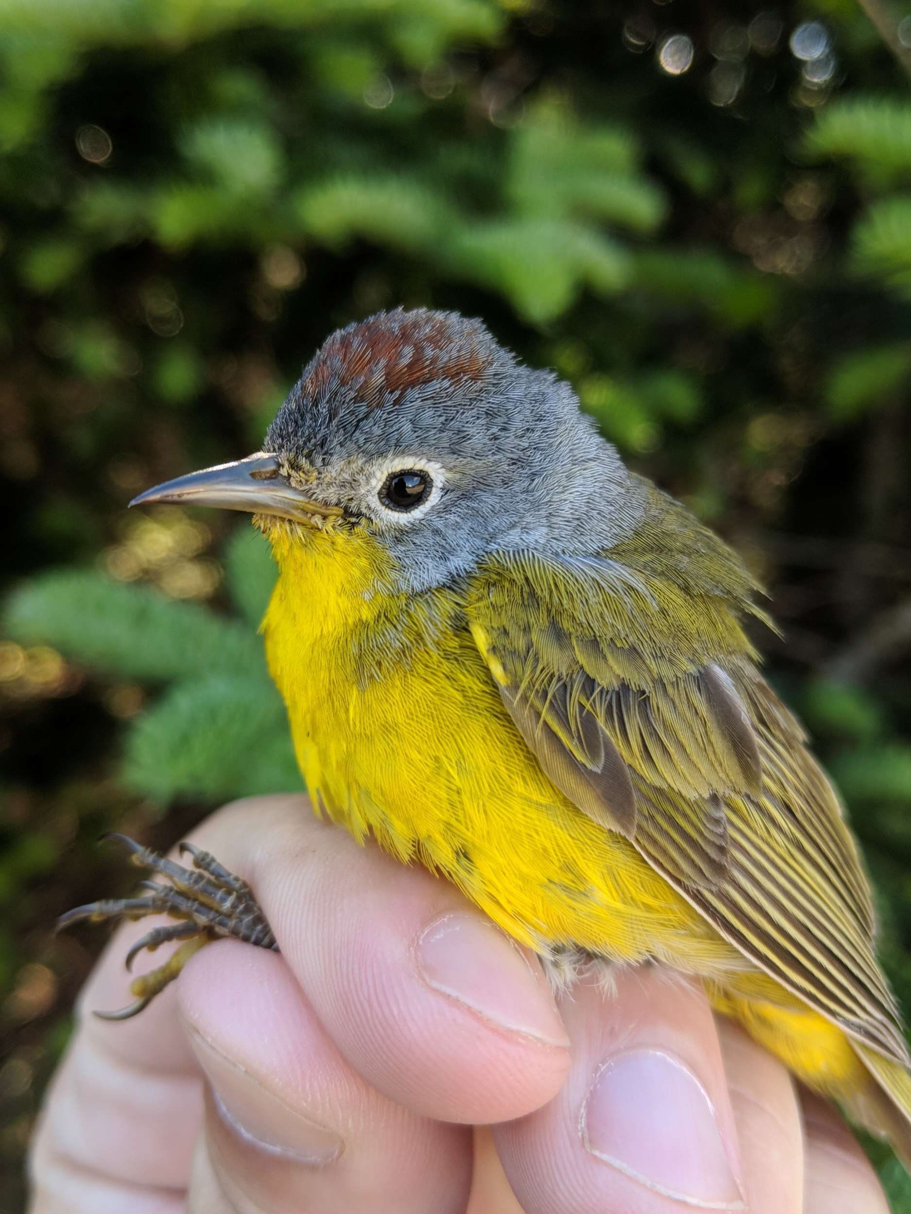 This dapper male Nashville Warbler was only the second of its species captured in VCE mist nets on Mansfield so far this season. © Nathaniel Sharp