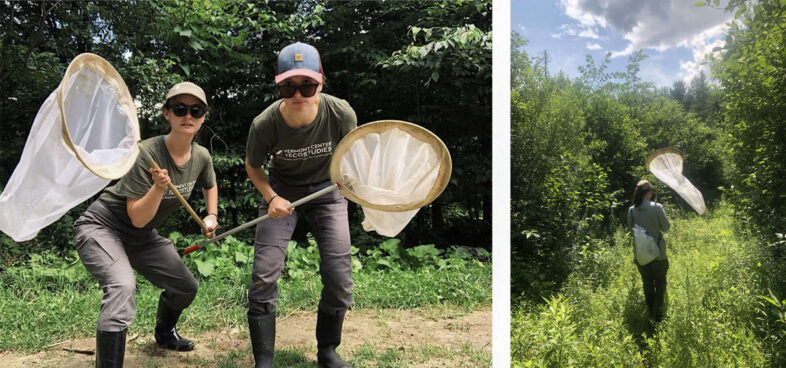 UVM/VCE’s perennial intern, Ani McMannon, and I equip ourselves with swing nets, glass vials, muck boots, and ineffective yet aromatic tick spray to trek along powerlines. We’re doing this as part of a study that seeks to understand bumblebee diversity along utility right-of-ways (ROW). ROW’s aren’t known for their aesthetic beauty, however they create unique habitats that support grassland arthropods I don’t usually encounter. While at first it’s challenging for me to not get distracted by all that calls the ROW home, I’m pure focus when the survey begins.