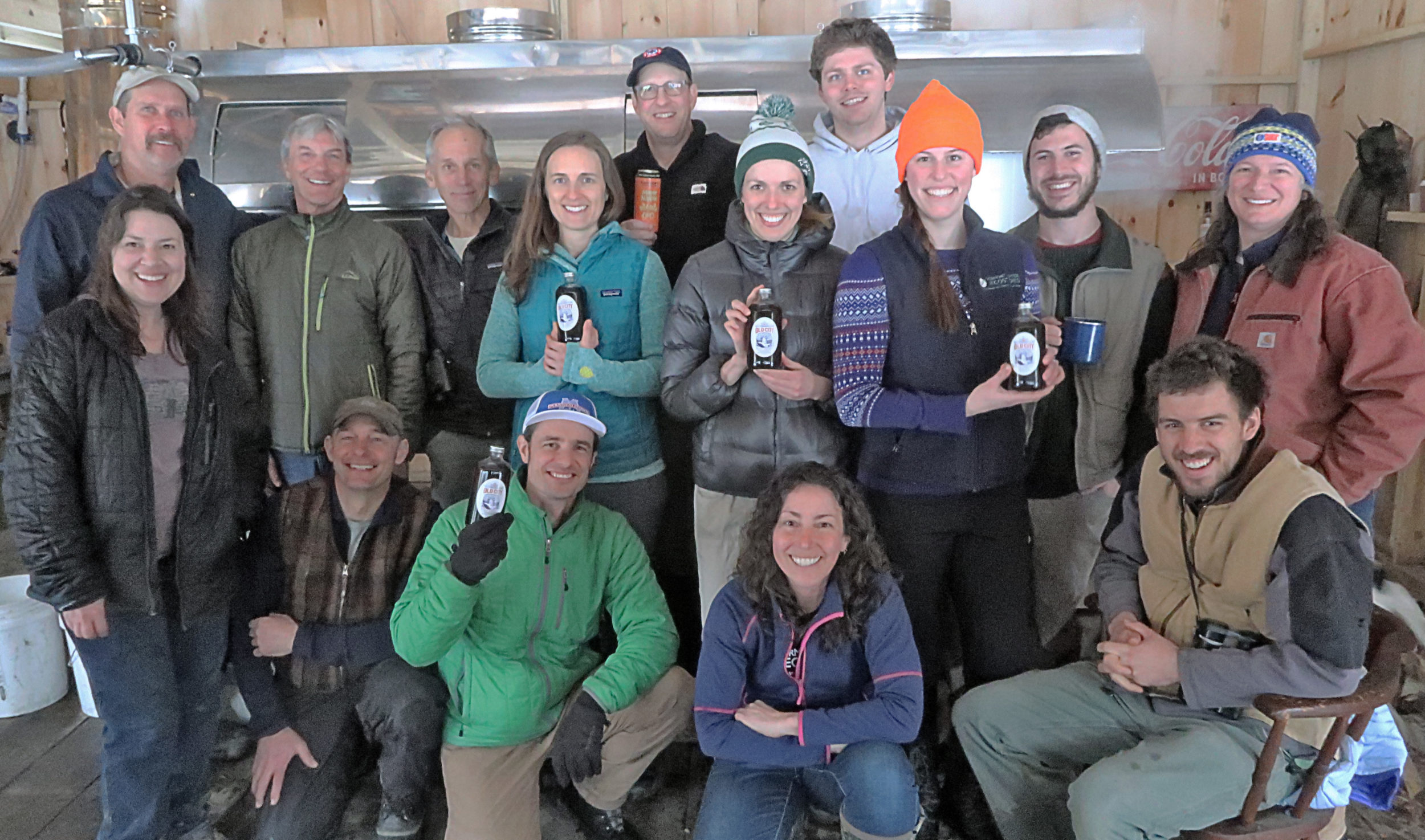 VCE’s pre-COVID staff outing in early March found us lending a hand at Pat Kelly’s (back row, 1st on left) Old City Syrup sugarhouse in Strafford, VT. / © Aaron Dotter