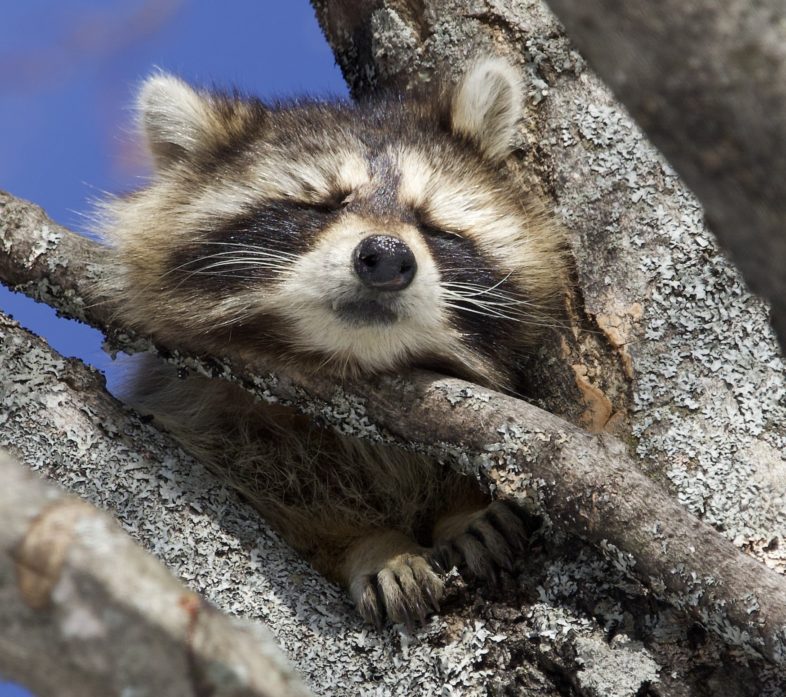 Congratulations to killamfarm for winning the February 2020 Vermont Atlas of Life iNaturalist photo-observation of the month. The image of a Common Raccoon (Procyon lotor) sleeping soundly under a blue sky captured the most attention by voters. They added that it “must have been chased up the tree the night before and spent the day resting before disappearing into the night.”