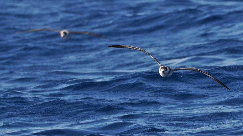 A pair of Black-capped Petrels cruises above the waves off the coast of North Carolina. By iNat user stevestevens licensed as public domain