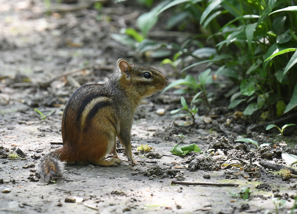A slight rustle at ground level echoed to my left, indicating that I was not alone on the wooded trail I was exploring. I froze, hoping that the rustler would make themselves known. I was not disappointed—mere moments later, a small rusty-brown form, complete with black and white stripes, emerged from the underbrush. Pausing in the middle of the trail, the Eastern Chipmunk (Tamias striatus) began to snack, dropping some of their cheek-fillers in the process. After a few minutes, the chipmunk departed, leaving some unfinished food on the trail. Upon inspection, I recognized False Solomon’s-seal (genus Maianthemum) berries.