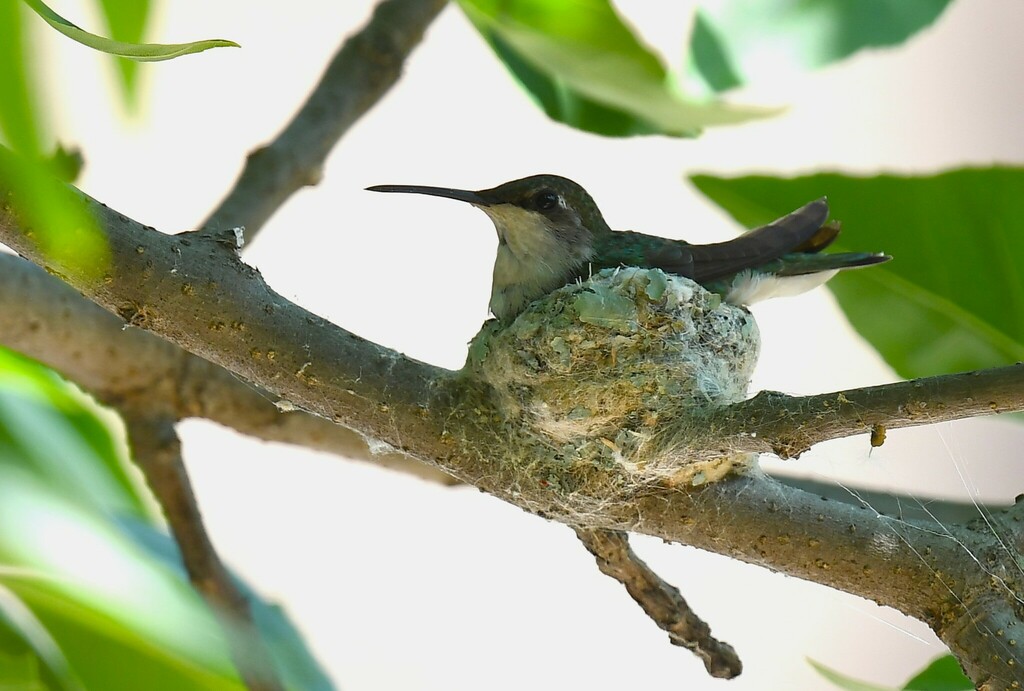 The Ruby-throated Hummingbird is Vermont’s only breeding hummingbird species. Weighing a mere 2.8 to 4 grams, they can beat their wings around 50 times per second and manage to migrate from North America to Central America and the Caribbean twice a year for their whole life. By early August, some male Ruby-throated Hummingbirds have already begun their fall migration. Females soon follow, and migration peaks in September. By October, the final birds have reached the Gulf coastline of the southeastern United States and are preparing to make the last leg of their journey. They will either follow the coastline and enter Mexico by land or fly straight over the Gulf of Mexico. During the fall, most follow the land to avoid hurricanes and other storms over the Gulf. Ruby-throated Hummingbirds fly low over the treetops during the day, so they can easily stop to fuel up on nectar and insects as they travel. They usually feed in the morning, travel midday, and forage again in the late afternoon before hunkering down for the night.