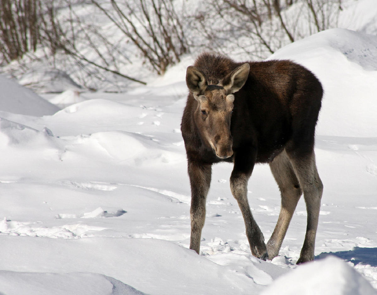 However, moose are designed for harsh winters. Although often seen as similar to deer, moose cope more easily with deep snow thanks to specially formed joints which allow them to lift their legs straight up nearly to shoulder height. Even in feet of snow, moose can move with relative ease and expend less energy when traveling or escaping predators. However, unlike deer, moose are at significant risk of overheating in the summer, due to their large size and thick fur which help them weather bitterly cold northern winters. As the climate warms, these traits which make them perfectly suited to the icy north will become a greater disadvantage, possibly affecting their survival.