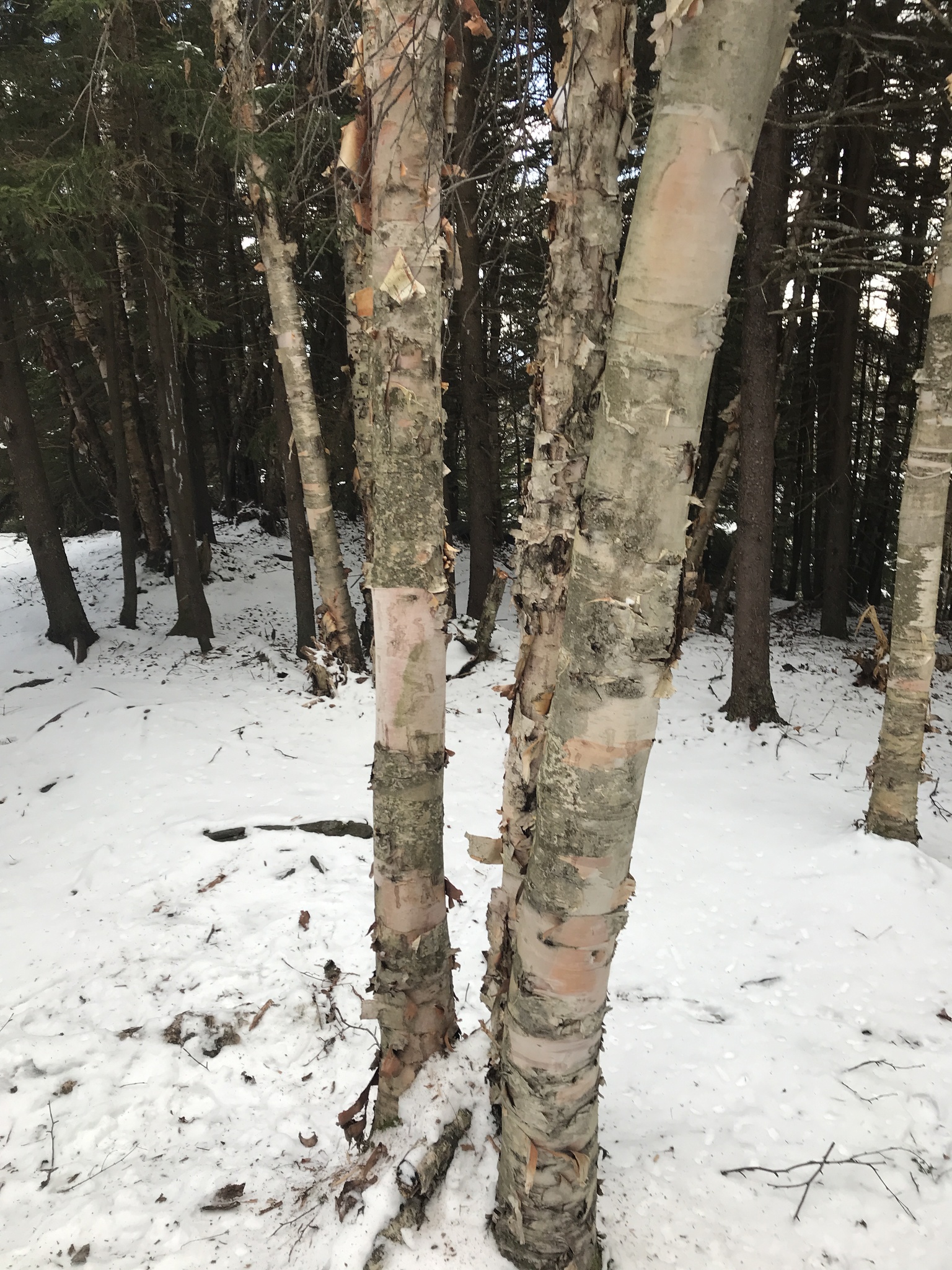 Paper birches are beautiful in winter, but many people don’t realize that two species of paper birch trees grow in northeastern North America – Paper or White Birch (Betula papyrifera) and Heart-leaved Paper Birch (B. cordifolia), once considered a variety of White Birch. As its name suggests, the latter species has distinctive heart-shaped, many-veined leaves, and it is restricted to mid- to high-elevation Appalachian and northern forests.