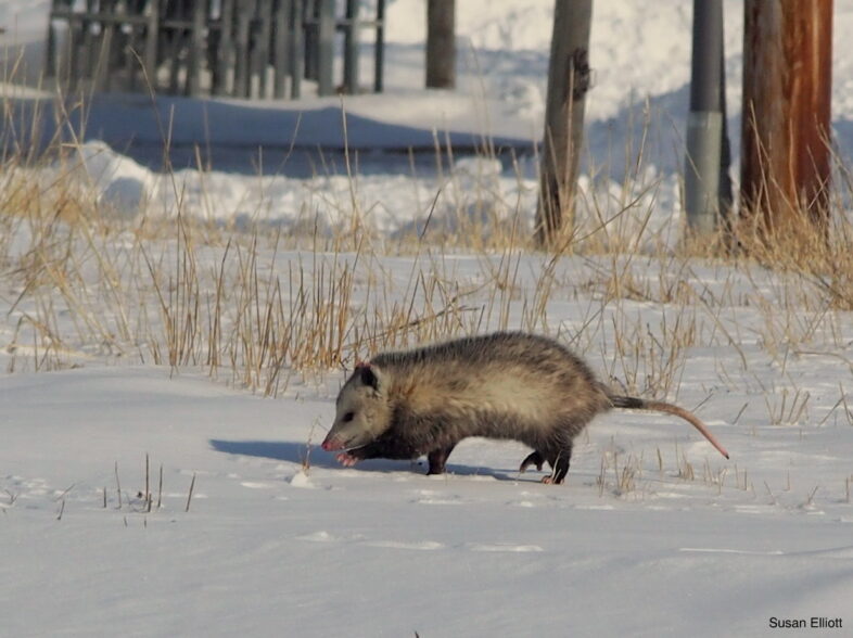 With thin fur coats and naked tail, ears, and long snout, opossums are not well adapted to a cold northern winter. Many show signs of frostbite. Yet, they have been marching slowly northward in overall distribution for decades. The first opossum was reported in Burlington in 1988. By 1995, they had reached Montreal.