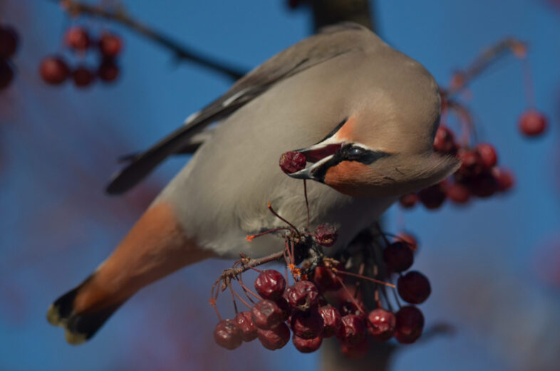 Bohemian Waxwing feeding on crabapples © Nathaniel Sharp