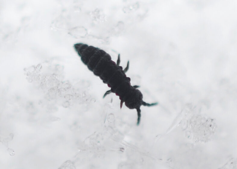 Winter springtails, also known colloquially as snow fleas, are a group of arthropods in the genus Hypogastrura. While six-legged, they are not technically insects, and are in fact more closely related to crustaceans.