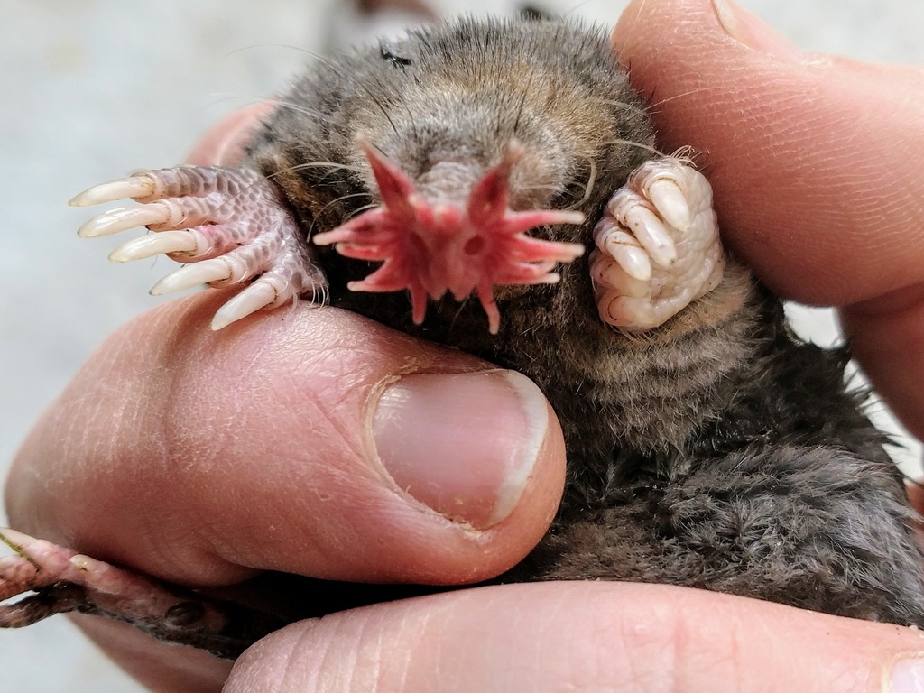 If you stroll along a river on a fine February day, you may see a small, dark blob moving skillfully under the ice. At first, it may appear to be a strange fish. Upon closer examination, you will notice that the blob is around seven inches long, with a thick hairy tail and long, clawed toes—this is not a fish at all. In fact, it’s a Star-nosed Mole!