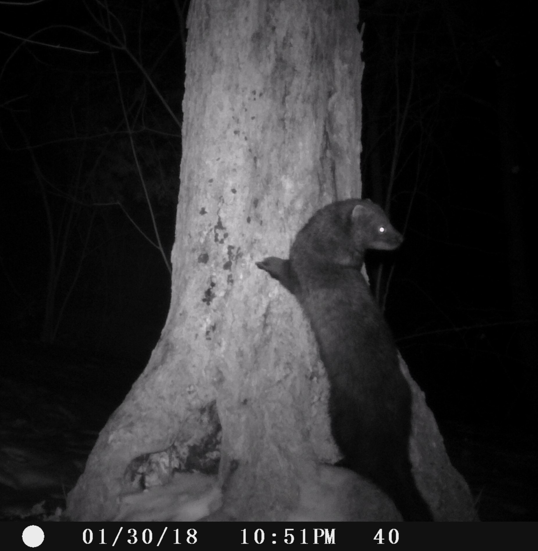 February is a special month for Fishers (Pekania pennanti), since they are beginning their breeding season. Fishers are large members of the Mustelid family, cousins of martens, minks, and others. They live in Vermont’s forests and across North America, preying on rodents (including porcupines), birds, and shrews, in addition to fruits, nuts, and berries. Fishers are the only predator in North America to have a specialized method for hunting porcupines to avoid their quills.