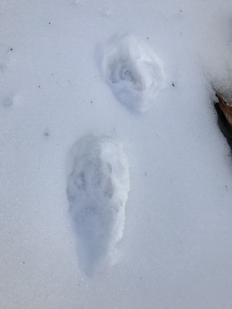 Fishers are very elusive animals, and are most active at twilight. However, you can keep your eye out for Fisher tracks in the snow while you enjoy the woods this February. Fisher tracks are roughly 2.25” long, with five narrow toes and a heart-shaped foot pad. The innermost toe will not always leave a mark. They look similar to fox tracks, but will not be found in a straight line, as fox tracks are (foxes place their rear foot where their front foot was as they trot along). Tracks are not always well-defined, because Fishers have very hairy feet. In some Fisher tracks, you may see four deeper indents within the foot pad mark. These are from glands on their rear feet, which they use for scent marking. Tracks may be spaced out, appearing to be in groups of two at first glance, as Fishers will place their back feet where their front feet were when navigating through deeper snow. They also may appear in offset groups of four when they are loping along in shallow snow.