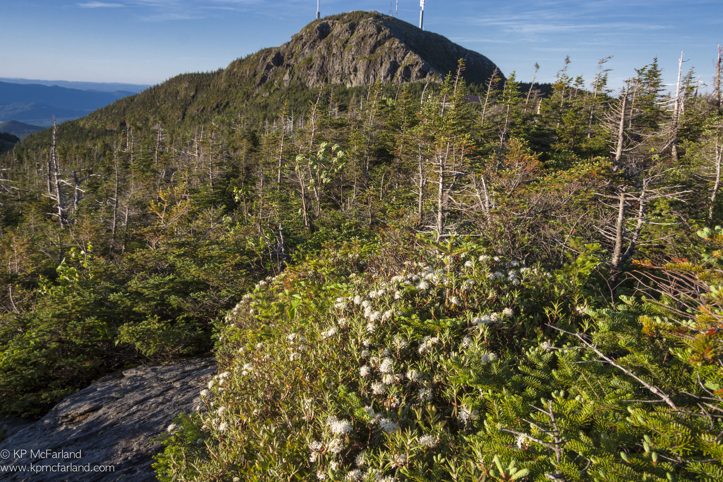 Labrador Tea (Rhododendron groenlandicum) bursts into bloom in mid June on the Mount Mansfield ridgeline. / © K.P. McFarland