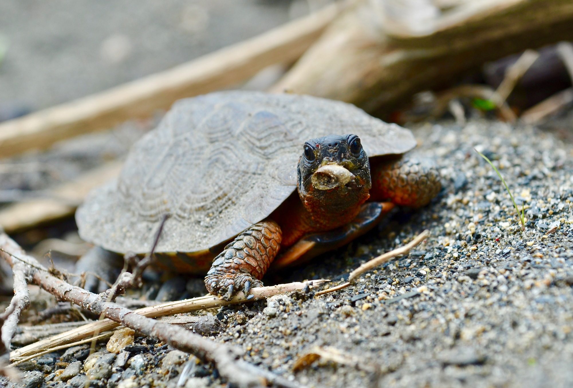 Where are all of Vermont’s Wood Turtles you ask? They are naturally elusive—even those who frequently visit Vermont’s streams may never encounter one. You may not even guess that they are found in all 14 counties! Unlike other turtles, which often bask on exposed rocks and logs, they prefer filtered light and vegetation to screen them from view. There is another important reason why they are difficult to find: they are rare. In fact, Wood Turtles are listed as a Species of Greatest Conservation Need in Vermont. Over the years, their slow speed and undeniable charm have made them victims of human-driven land use change and collection. Their frequent journeys across the landscape also make them common casualties along roadsides where our desire for fast travel conflicts with their slow pace. In many cases, mortality from these sources, particularly roads, far outpaces this long-lived species’ reproduction rate, making it difficult for populations to recover.
