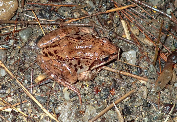 Wood Frogs (Lithobates sylvaticus), the only amphibian found above the arctic circle in North America, are regularly the first amphibians to appear from hibernation in Vermont. Even while there’s snow on the ground and ice on the water, throughout late March and early April, these unique creatures begin their annual migration to their chosen vernal pool. iNaturalist observations of Wood Frogs from March show that these early-appearing individuals are centered within the Champlain Valley, where phenology is ahead of the rest of the state.