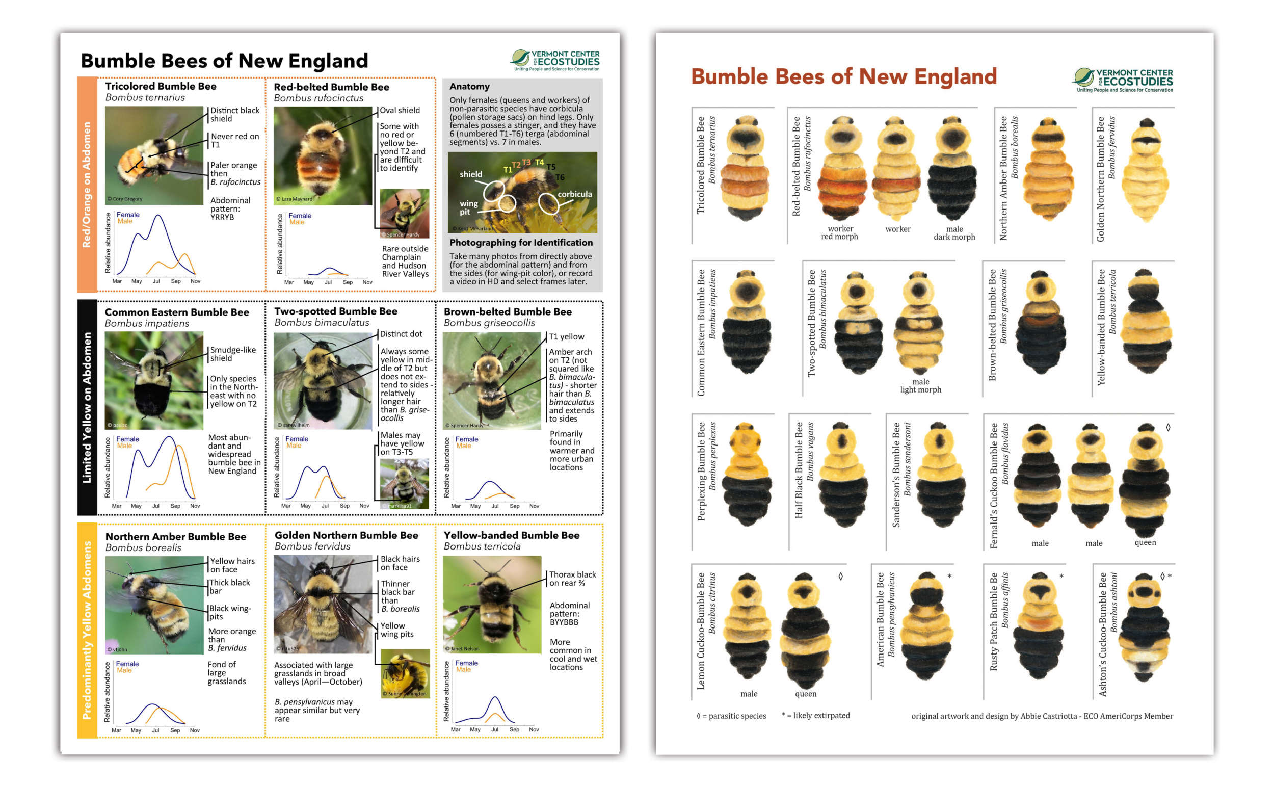 Despite the snow piling up, many of us are getting ready for warmer weather and the flush of life that comes with it. In many years, the end of March brings the first bees, including a few of the hardiest (or foolish) Bumble Bee queens. This charismatic genus is recognized and appreciated by many Vermonters, though a closer look reveals a fascinating diversity that easily entices the keen observer into the world of bee-watching. Unlike many of Vermont’s 38 other bee genera, many Bumble Bees can be identified to species with a good view and a little bit of practice. Check out our Bumble Bee page for a lesson in identifying live bumble bees and several field guides designed to be downloaded or printed for quick reference.
