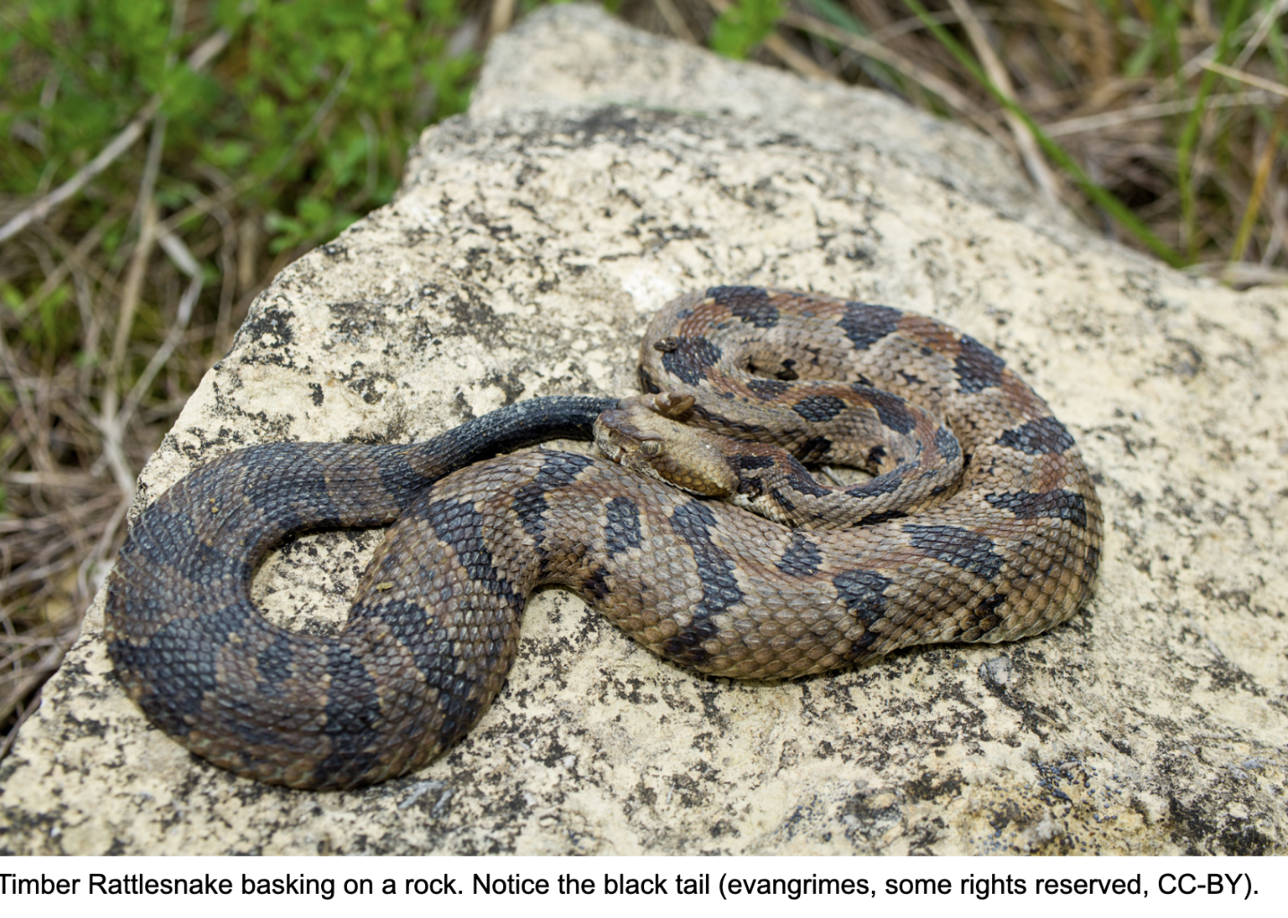 In Vermont, there is only one species of snake that residents need to be on the lookout for: the Timber Rattlesnake (Crotalus horridus). While the likelihood of dying from a Timber Rattlesnake bite is low, their venom can do considerable damage to a human or pet and should be treated as a medical emergency.