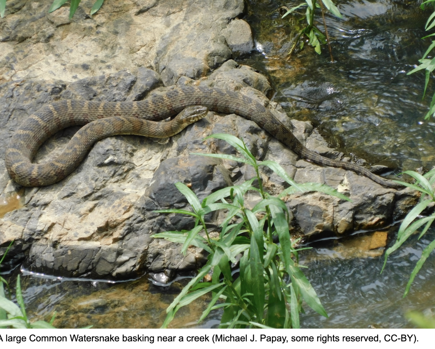 As for our only venomous snake, Timber Rattlesnakes are only found in rocky areas in the western portion of Vermont, and are most active from April through October. They rattle when threatened, and have a triangle shaped head that is often used to identify venomous snakes.