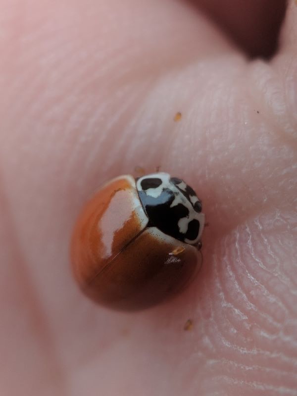Like the high number of common names, there are a high number of ladybug species. In North America, we have over 475 species, and in Vermont we have 42 that have been recorded thus far (35 native, seven introduced). These lady beetles can be found across all terrestrial habitats in Vermont, from valley cornfields to the top of Mt. Mansfield. Between April and May, lady beetles begin to emerge from their hibernation spots. Most lady beetles overwinter as adults in aggregations (groups) in leaf litter, under logs, and sometimes in the bark of standing live and dead trees. When they emerge from their overwintering sites, many species will breed and then migrate to their summer sites or disperse into the immediate area of the overwintering site.