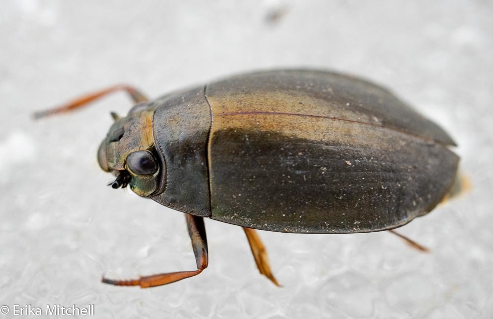 Standing on a fallen oak tree, partially submerged in the Connecticut River, called Kwanitekw by the Abenaki, I found myself mesmerized by dancing beetles. An entire group of them swirled and twirled across the water’s surface. Individuals periodically paused before resuming their dance or taking it beneath the water’s surface, spiraling into the depths of the water before popping back to the surface on the other side of the log. We call them whirligig beetles (Family Gyrinidae).