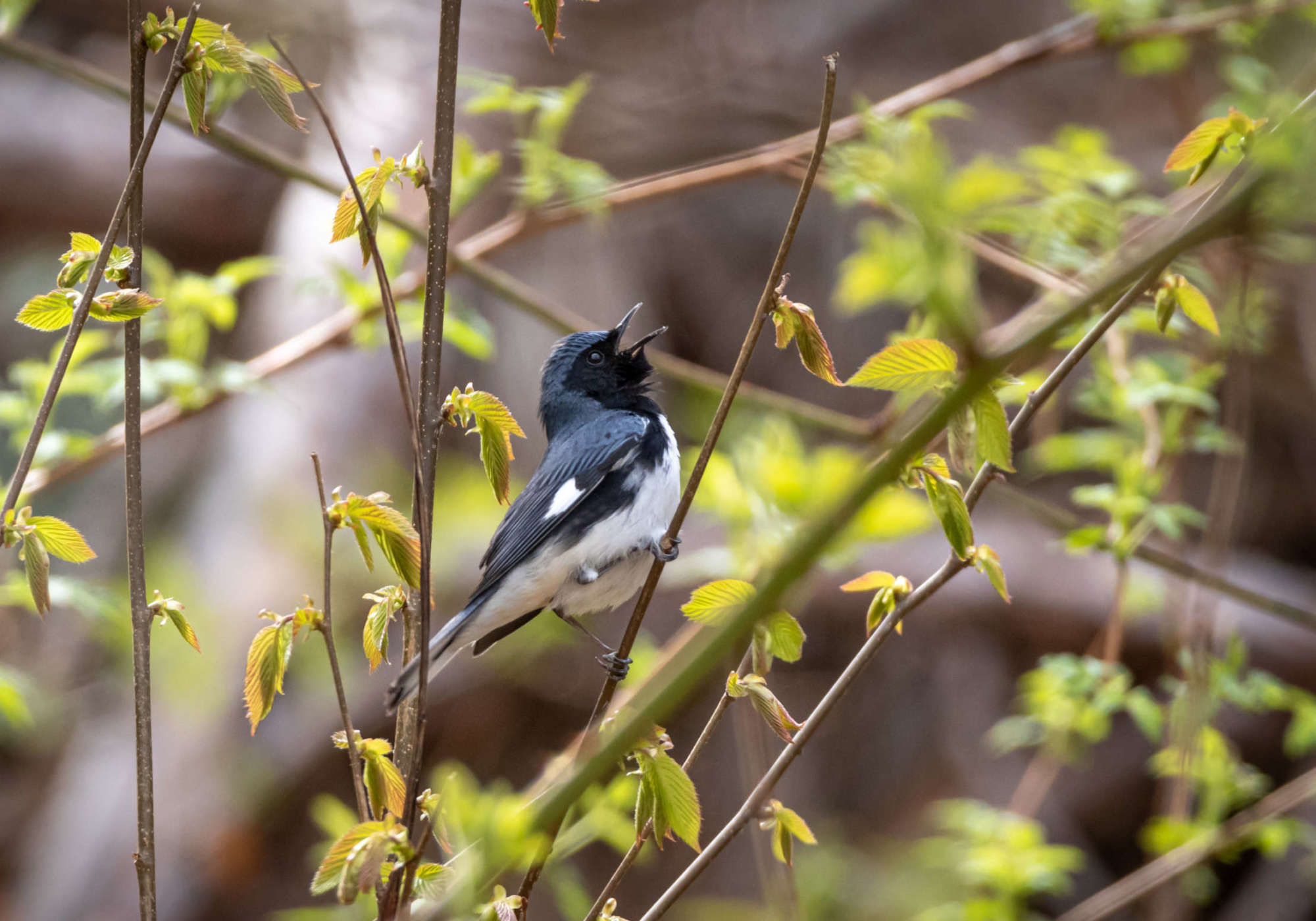 However, the timing of their cues is changing. As the climate changes, spring leaf-out is occurring earlier and earlier. Sugar Maple leaf-out has occurred 1.6 days earlier per decade on average in New England since they started measuring it at Hubbard Brook. What does that mean for migratory birds? So far, early leaf-out dates could be beneficial for some species. For example, in years when Sugar Maple leaf out is early, Black-throated Blue Warblers are more likely to raise two successful nests in close succession. Conversely, when cool spring temperatures delay leaf-out, fewer pairs can raise two successful nests within a single summer.