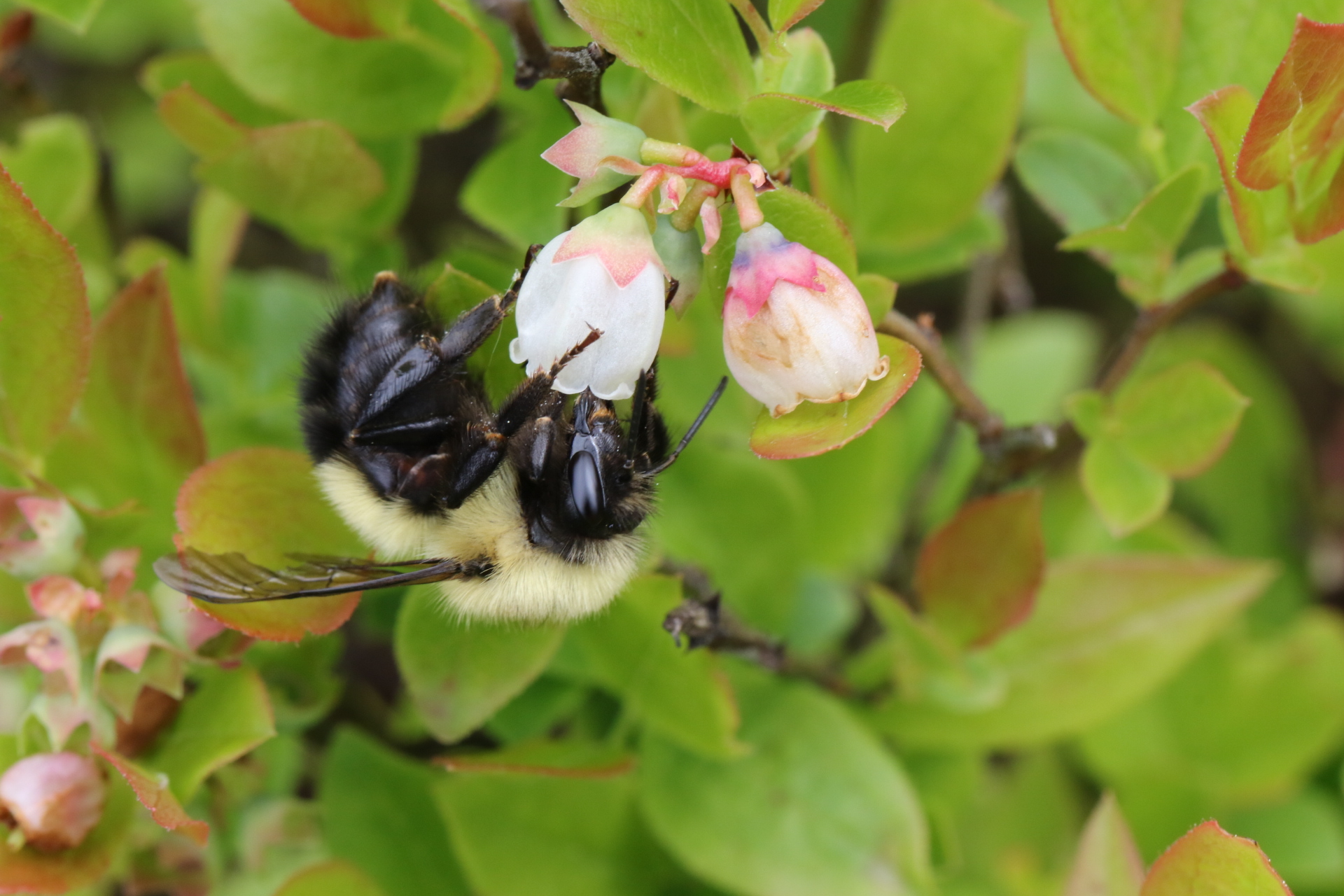 Did you know wild bees make bigger blueberries than domestic bees? Research from UVM has shown that more wild bees lead to bigger, more abundant, and earlier blueberries on commercial farms in Vermont. Since blueberries are native to the Northeast, many native bees are well-adapted to handle the complicated flower morphology. Not only are they a favorite food source of queen bumble bees, but they are also the only food source for roughly six species of specialist bees in New England. Two of these bees are on our “Most Wanted” list of bees not yet recorded in Vermont. If you have a blueberry bush or two in your yard, you have a chance of finding a new species for the state! Don’t forget to share your findings with the Vermont Wild Bee Survey on iNaturalist and add the observation field “Interaction->Visited flower of:” to help us track which flowers bees are visiting.