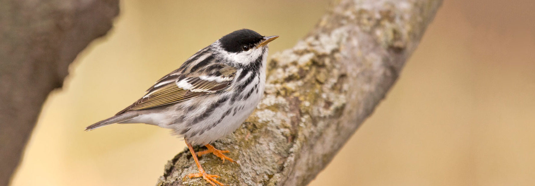 When breeding season begins in June, the male (marked with a black cap or “poll”) sings his high-pitched song from treetops throughout his territory. Meanwhile, female Blackpoll Warblers are busy building their bulky, well-concealed nests low in conifers. They then lay three to five creamy buff or greenish eggs, which they alone incubate. All this stationary incubating means the females must stay well hidden from predators. Their cryptically patterned plumage may help them avoid the gaze of Sharp-shinned Hawks (Accipiter striatus), which are known to prey on both nestlings and, occasionally, attending adults.