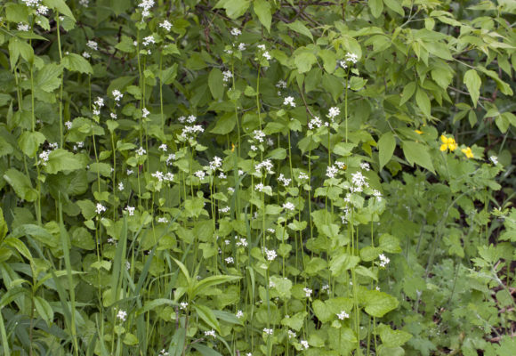 Closely tied to healthy hardwood forests, some West Virginia White populations are declining or have disappeared through loss of forest habitat, high populations of deer overbrowsing understory plants, climate change, and the spread of an introduced weed called Garlic Mustard (Alliaria petiolata).