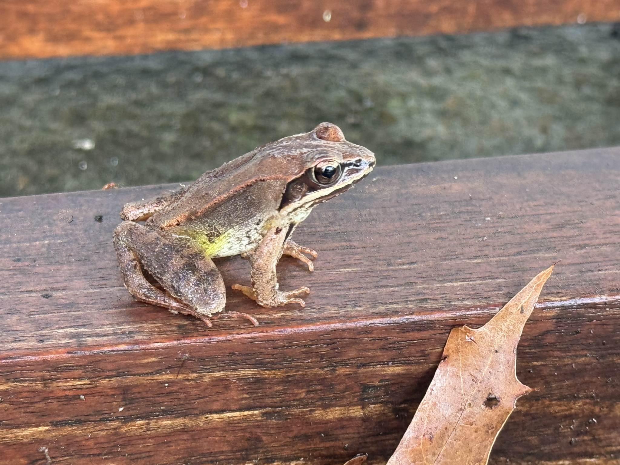 Many of our region’s native frogs, such as the Green Frog (Lithobates clamitans), bury themselves in the leaf litter or sediment at the bottom of ponds and streams. Their cousins, the Bullfrog (Lithobates catesbeianus), Pickerel Frog (Lithobates palustris), Northern Leopard Frog (Lithobates pipiens), and Mink Frog (Lithobates septentrionalis), follow their lead with the same strategy. Similarly, aquatic turtles burrow into the mud to escape winter’s coldest temperatures.