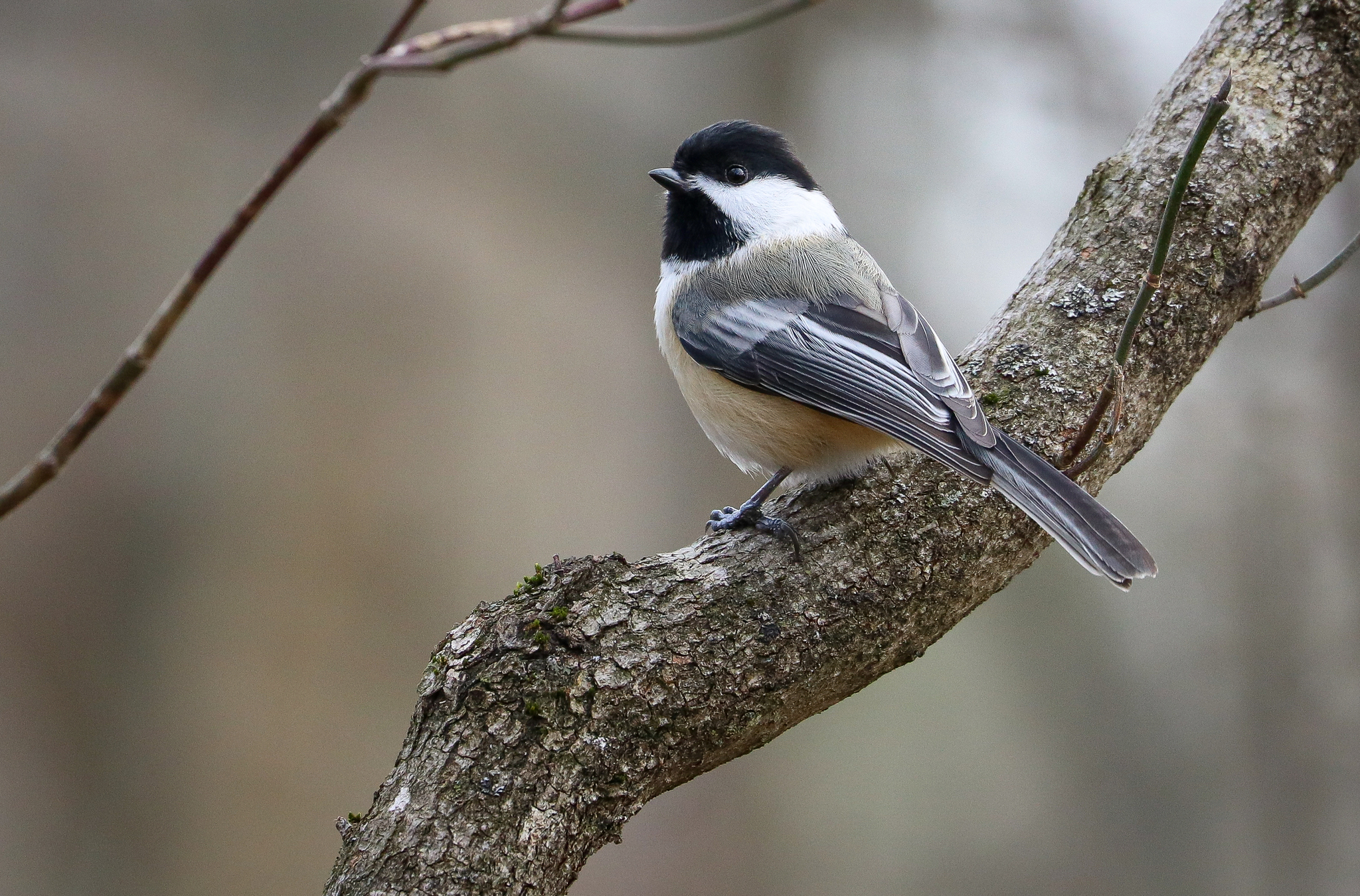 A mixed-species flock is a group of multiple birds of different species traveling together, looking for food and keeping watch for predators. These flocks form in fall as birds finish breeding and stop defending their territories to instead roam in search of limited resources. In the Northeast, Black-capped Chickadees form the nucleus of these winter flocks, welcoming 10 or so juvenile chickadees from multiple families. They are joined by many other species including White-breasted and Red-breasted Nuthatches, Golden-crowned Kinglets, Tufted Titmice, and Downy Woodpeckers.