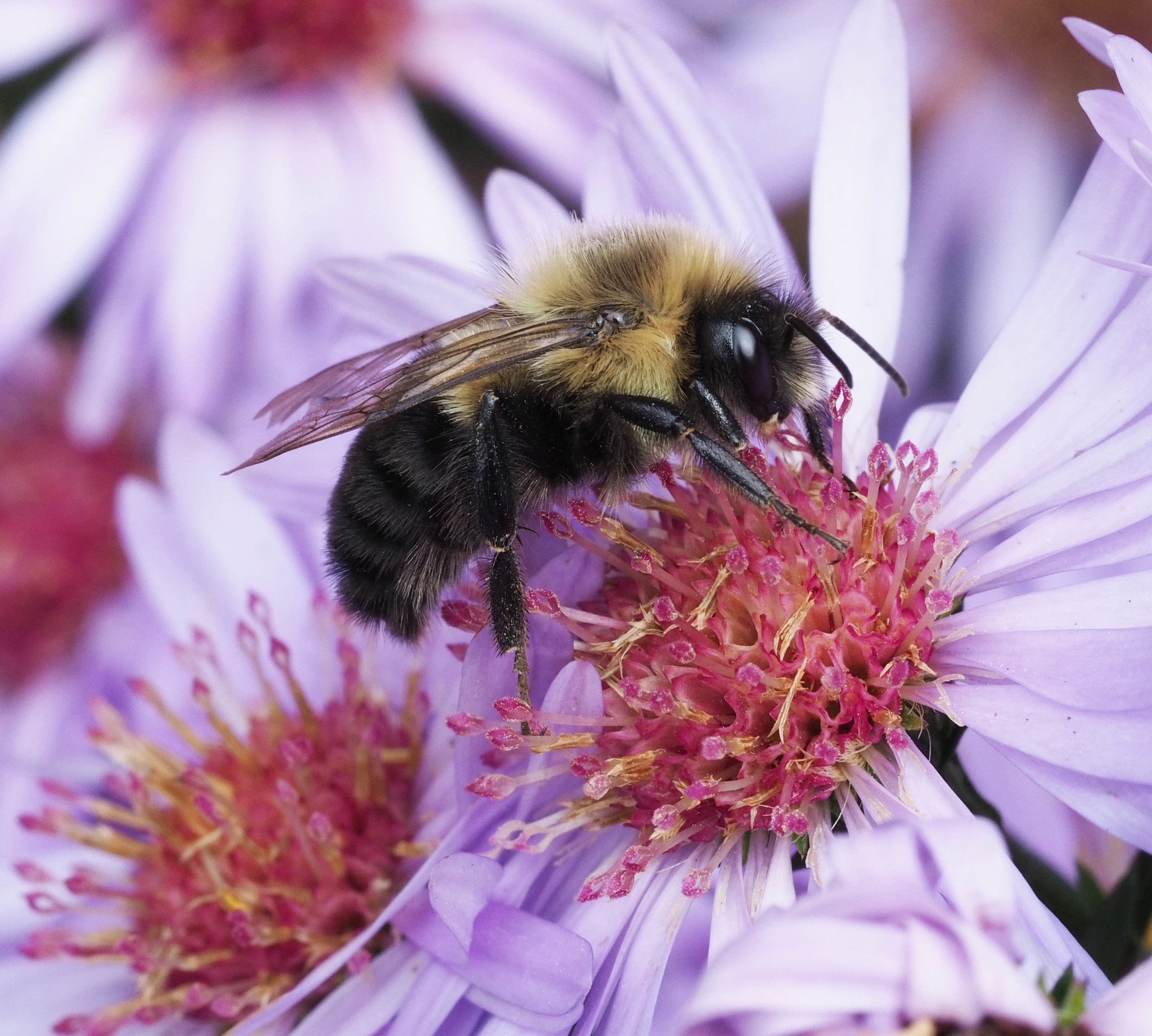 Depending on the year, November might still offer a chance or two for some late fall bee-watching. At least eight species have been photographed during the month, with the most frequently observed native species being the Common Eastern Bumble Bee (Bombus impatiens). By now, most of the active bumble bees are males, which will perish with the first hard freeze. If you are lucky to find one in the next few weeks, enjoy it since male bumble bees won’t exist again for at least seven more months. All of the necessary genetic material is contained within recently mated queens that are hidden in the leaf litter or rodent burrows. These queens will spend the winter in torpor, emerging in the spring to start new colonies. Learn more about the Bumble Bee life cycle, and sharpen your identification skills on our Bumble Bee page.