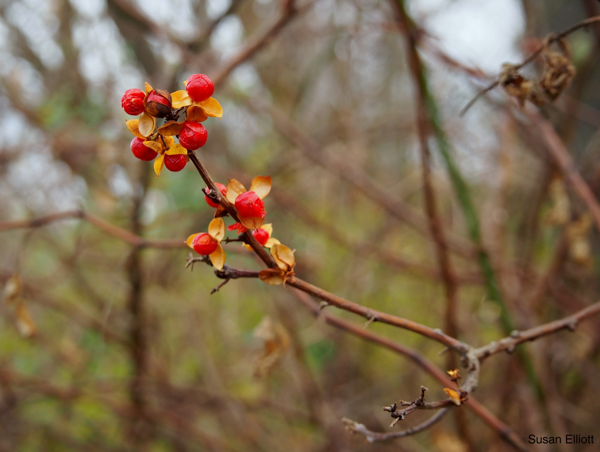 Seasonal plant materials are staples in New England holiday décor. From corn stalks and pumpkins for Halloween to evergreen wreaths and trees for Christmas. One example usually seen around this time of year is using Oriental Bittersweet (Celastrus orbiculatus) to make autumn wreaths and table decorations. It’s easy to see why this is a popular choice for decorations because the bright red berries of this vine become more conspicuous after the leaves drop in the fall. Some people are unaware that this ornamental is non-native and aggressively invasive. This vine can quickly establish in disturbed sites and begin outcompeting native vegetation by girdling, toppling trees, and shading out other species with its dense growth. Oriental Bittersweet can be found throughout Vermont and is likely here to stay. The plant is adaptable and can hybridize with our native American Bittersweet (Celastrus scandems). Oriental Bittersweet is just one example of a widespread and established non-native species in Vermont. These species, at their worst, can degrade our natural communities and reduce local diversity. But with knowledge of life history traits and concerted effort, habitats affected by this invasive species can be restored. While there are plenty of examples of invasive species removal efforts, an ounce of prevention is worth a pound of cure. Choosing native alternatives when landscaping and decorating can limit the introduction and spread of invasives while focusing removal efforts on emerging invasives can help prevent new non-natives from gaining a foothold in the state. To learn more about invasives in Vermont, check out www.vtinvasives.org.