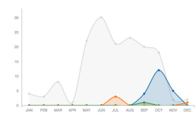 Observations of Sharp-shinned Hawks reported to Vermont eBird. You can help track these and other birds by reporting your sightings, too.