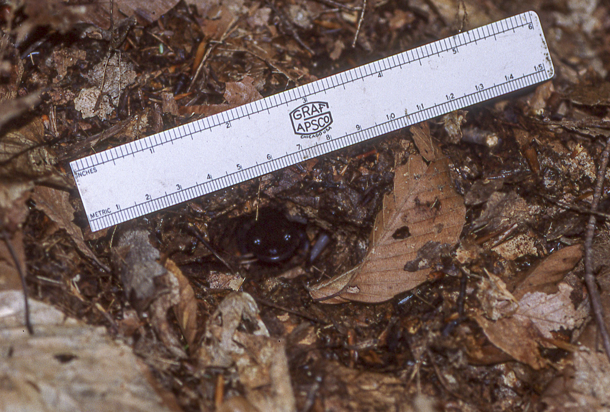 After an hour on hands and knees, Steve found the exact spot. A series of narrow, branching tunnels under the leaf litter and rotting logs held the prize. Steve was able to move just a few leaves and there it was peering out from a tunnel opening.