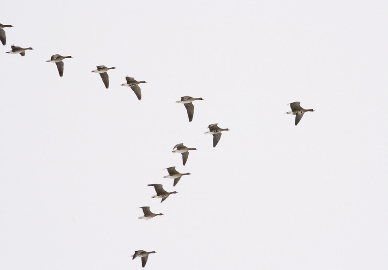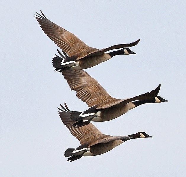 A familiar autumn sight in Vermont is that of Canada and Snow Geese (among many other species) migrating in a classic V-shaped flight formation. The V- or J-shaped flight pattern utilized by many migrating birds conserves group energy, allowing flocks to migrate faster than individual birds could. The aerodynamics behind this energy saving mechanism are fascinating.